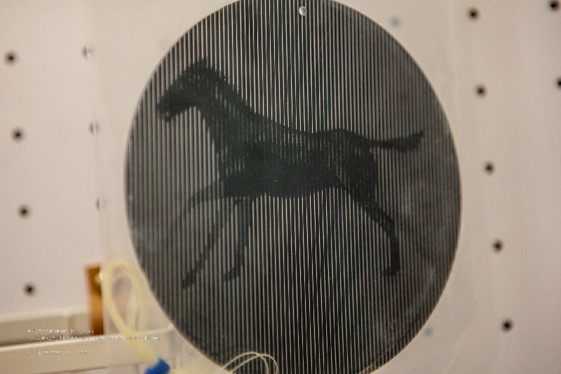 後者使用滑動的條紋紙結構裝置來產生光柵動畫的效果。