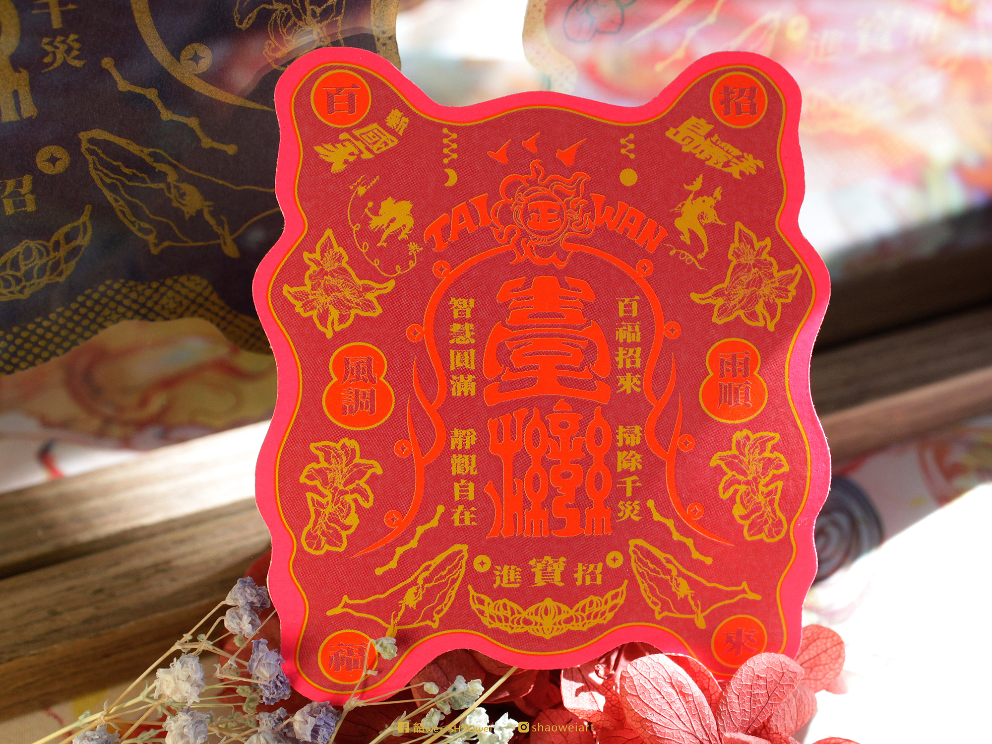 復古喜氣的開運紅,在陽光照映下,