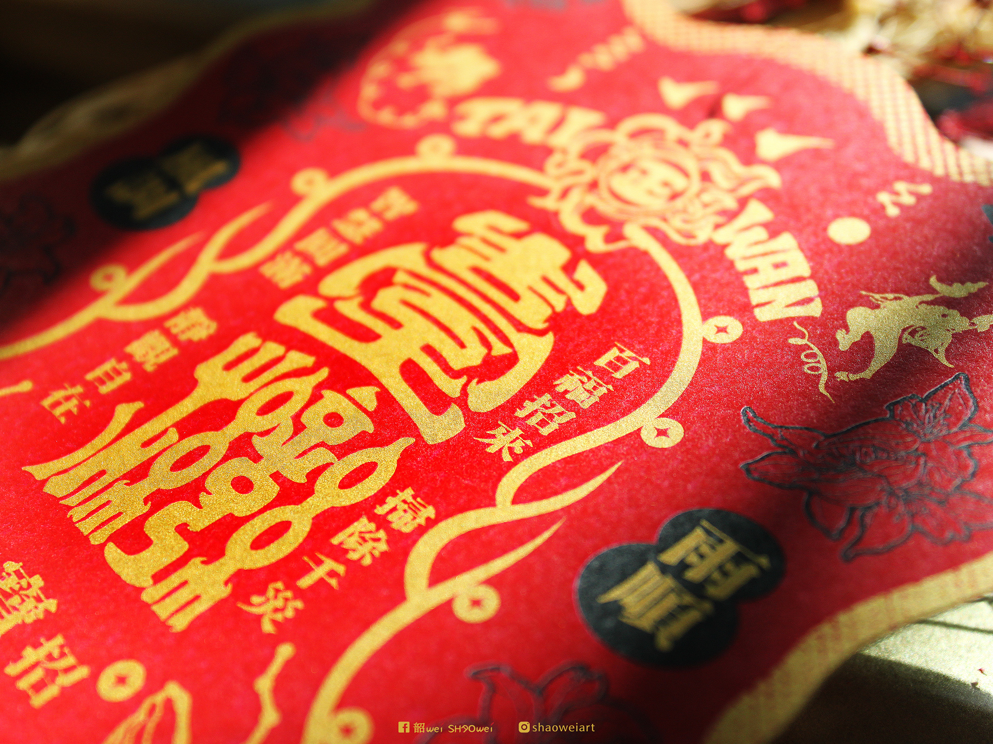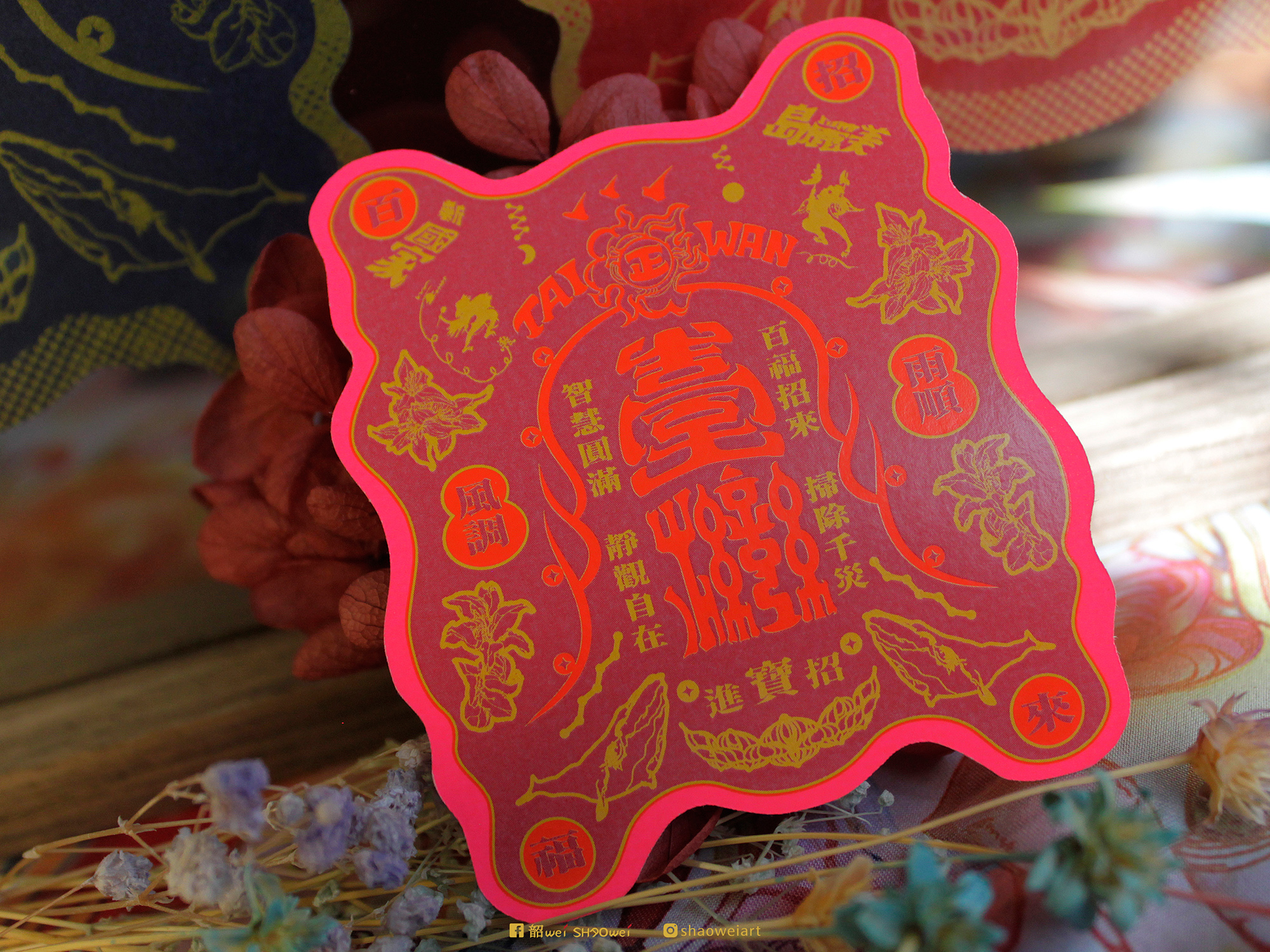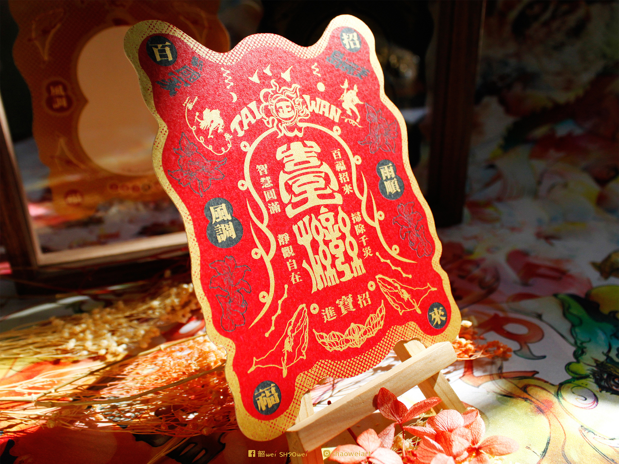A -【 開運紅 • 金墨印刷造型雙面明信片 】